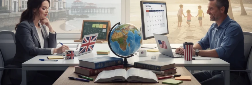 La maîtrise des nuances entre « vacation » et « holidays » représente bien plus qu’une simple question de vocabulaire pour les apprenants francophones d’anglais. Cette distinction linguistique reflète des différences culturelles profondes entre l’anglais britannique et américain, impactant directement la communication professionnelle internationale. Alors que les francophones utilisent majoritairement le terme « vacances » au pluriel, les anglophones naviguent entre plusieurs termes dont l’usage varie selon le contexte géographique, la situation professionnelle et même la période de l’année. Comprendre ces subtilités devient essentiel dans un monde globalisé où les échanges transatlantiques se multiplient, particulièrement dans le secteur des ressources humaines et du tourisme.
